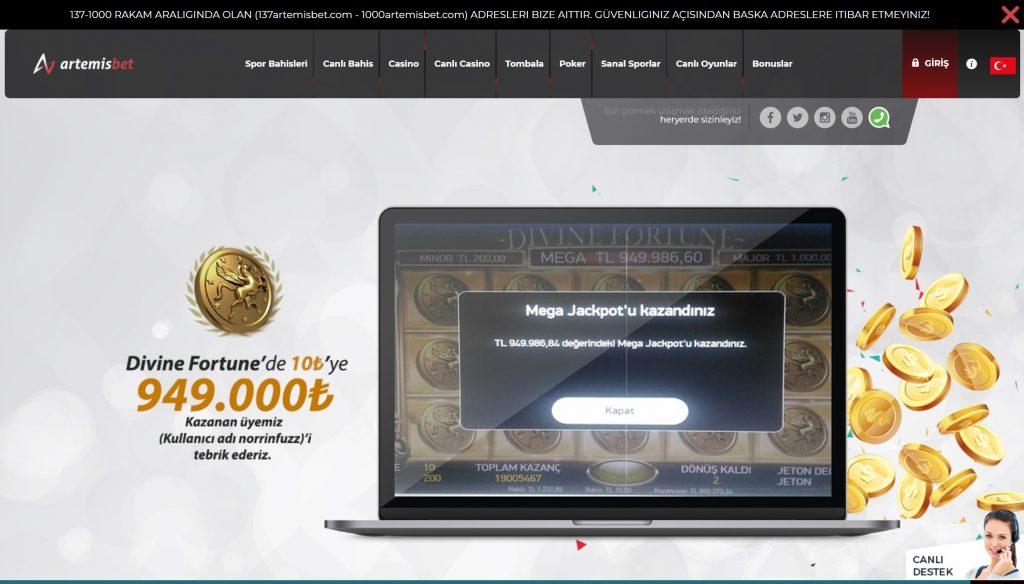 Artemisbet güvenilir mi şeklinde araştırma icra eden kullanıcılarımızın aklında herhangi bir soru işareti var ise bunun için Artemisbet web sitesine giriş yapmış olduktan sonrasında direkt canlı destek kadrosuna yazarak sorularına yanıt bulma şansı da yer verilmiştir. Artemisbet tarafından onlarca farklı canlı destek birimi kurulduğundan dolayı gün içinde ne kadar kesafet olursa olsun veya sayfa içerisinde aynı anda kaç şahıs canlı yardımcı birimine makaleyor olursa olsun, kısa müddette yanıt alma şansınız bulunmaktadır. tüm soru işaretlerini giderdikten sonra ise, tek bir biçim doldurarak siteye üyelik işlemlerinizi tamamlayabilirsiniz.
